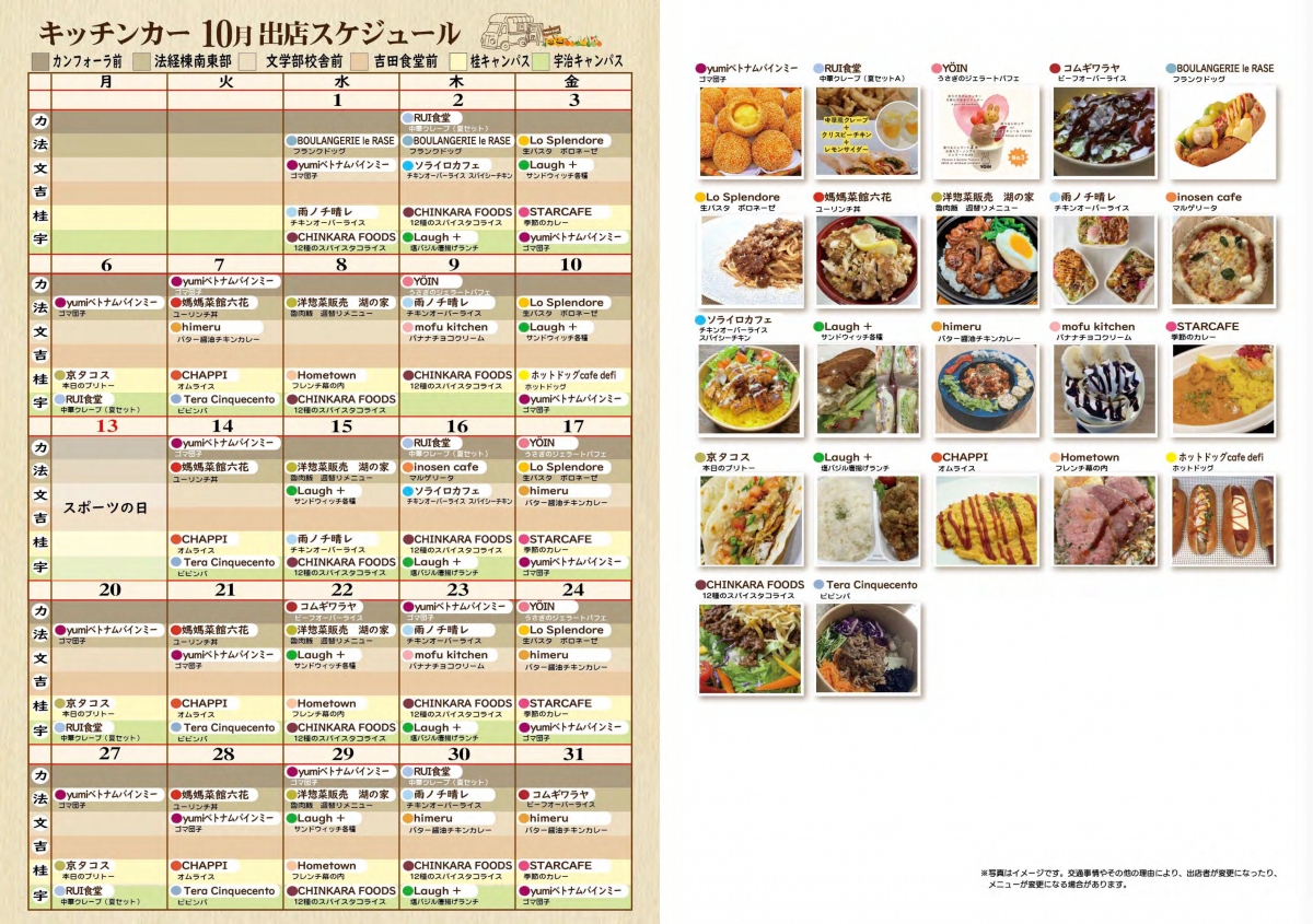 ※出店箇所:カンフォーラ前、吉田食堂前、法経棟南東部、文学部、桂キャンパス、宇治キャンパス、