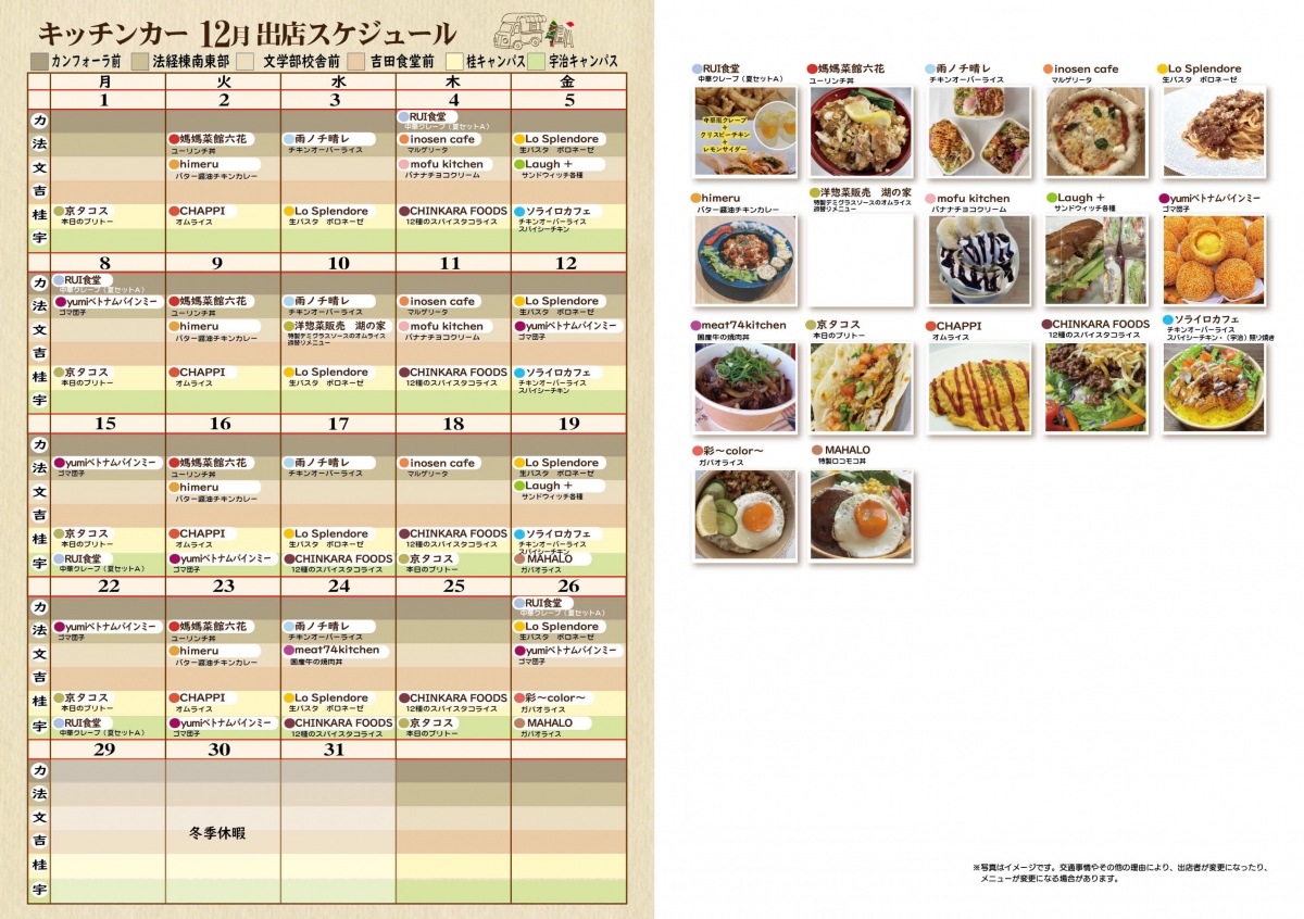 ※出店箇所:カンフォーラ前、吉田食堂前、法経棟南東部、文学部、桂キャンパス、宇治キャンパス、