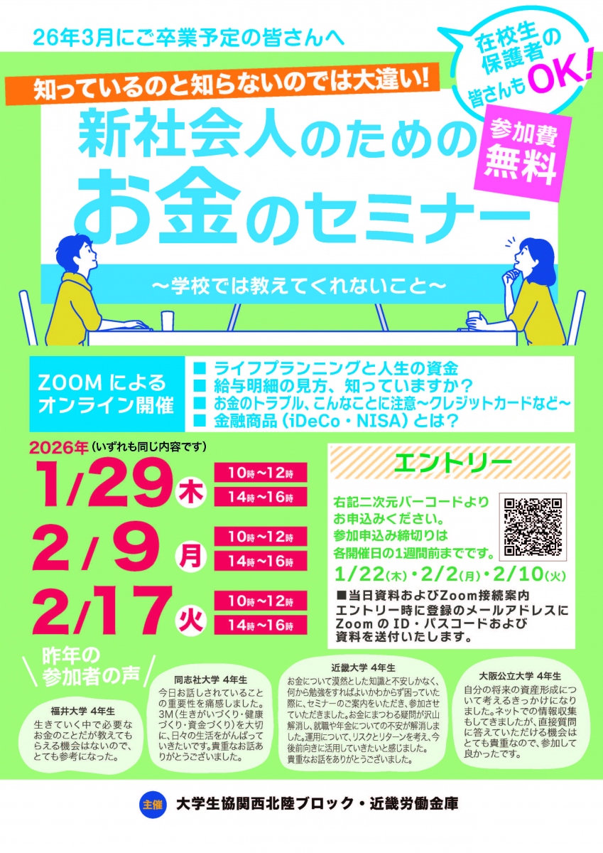 学校では教えてくれない、「新社会人のためのお金のセミナー」開催のお知らせです。