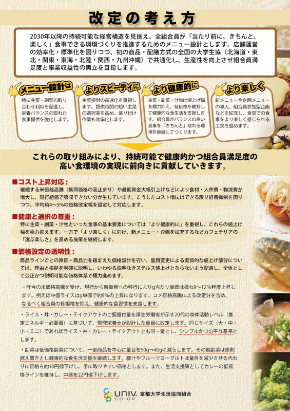 大学生協事業連合に加盟する全大学生協で、全国一斉に一部商品の価格改定およびメニューのリニューアルを実施させて頂きます。