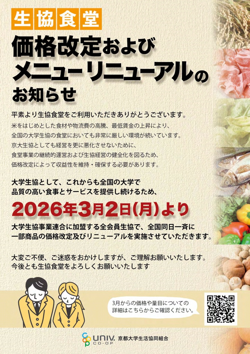 食堂の価格改定およびメニューリニューアルのお知らせ